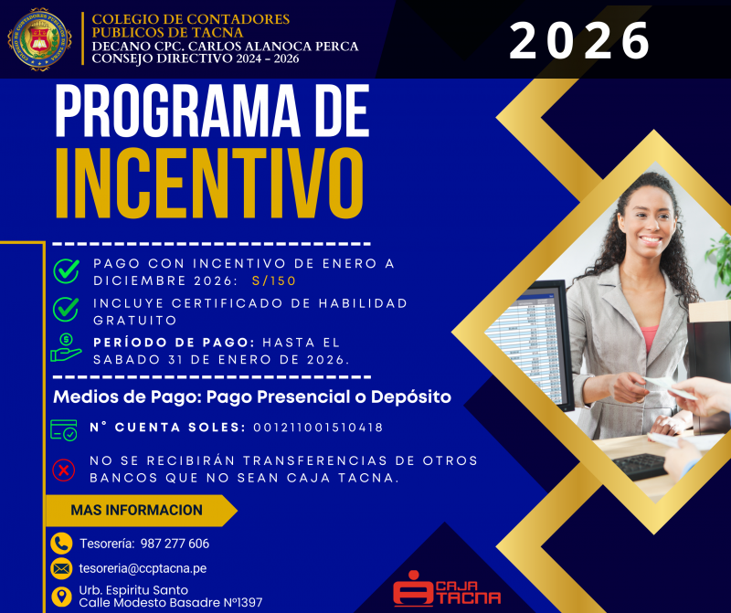 Bajo la gestión del CPC. Carlos Alanoca Perca, Decano del Colegio de Contadores Públicos de Tacna, invitamos a nuestros colegiados a acogerse a este beneficio: